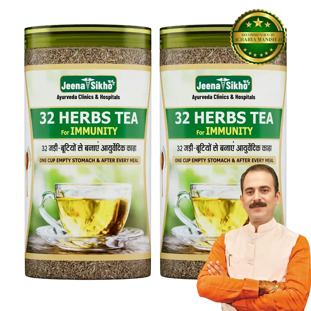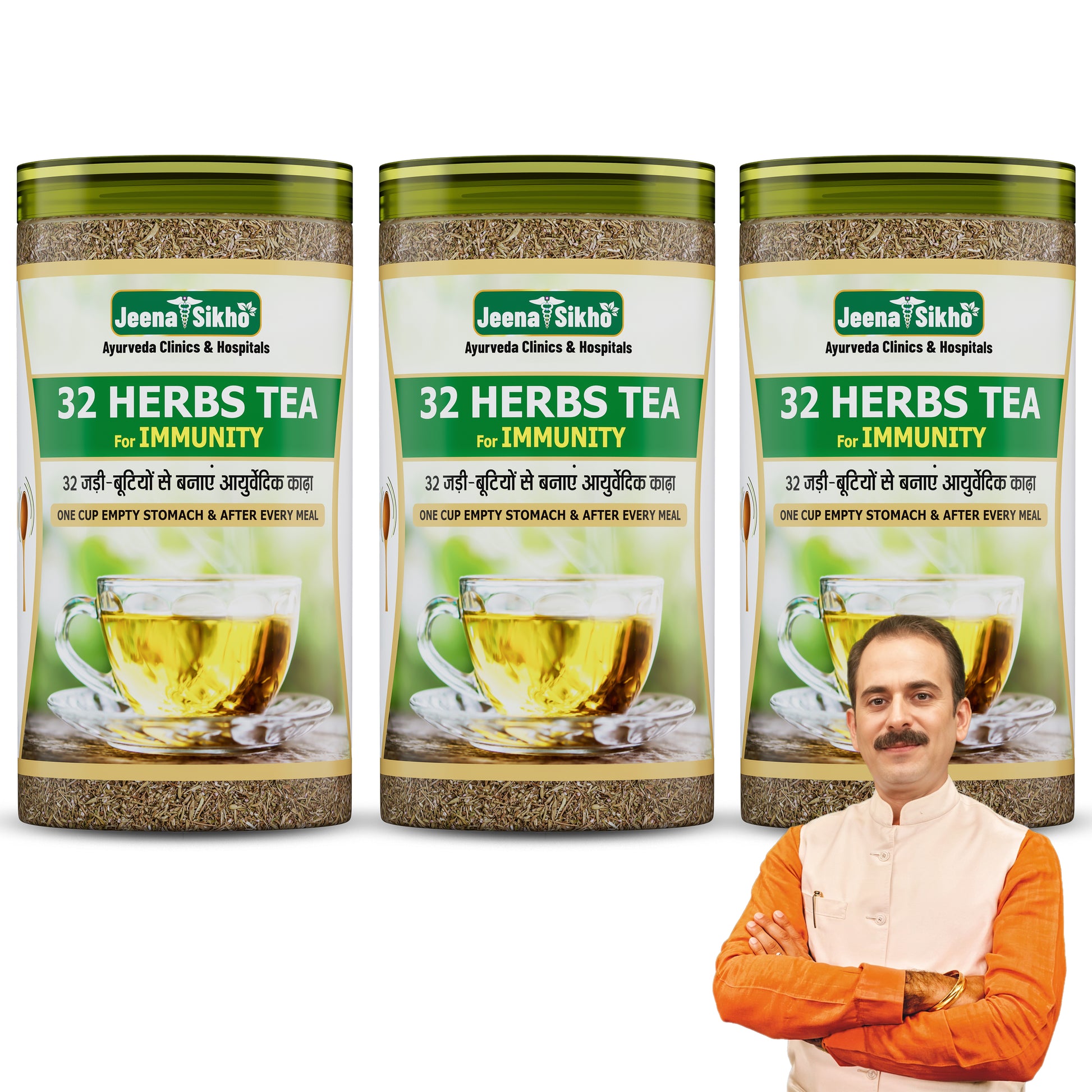 What benefit does Jeena Sikho 32 Herbs Tea offer?
