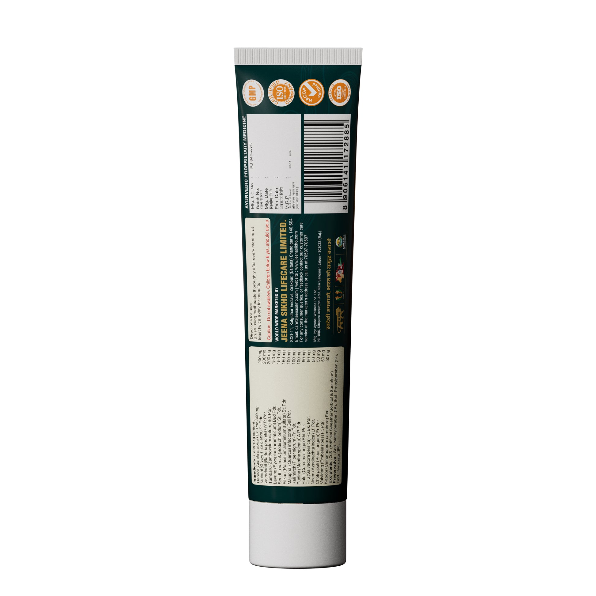 Jeena Sikho Dant Shuddhi Paste is an Ayurvedic dental care solution crafted with powerful ingredients like Triphala Churna, Salt, Honey, Baking Soda, Trikatu, Trijataka, and Clove. This herbal formula naturally strengthens teeth and gums, fights bad breath, whitens teeth, and prevents plaque buildup. Free from harmful chemicals, it ensures oral freshness, hygiene, and lasting protection, making it a safe and effective choice for your daily oral care routine.