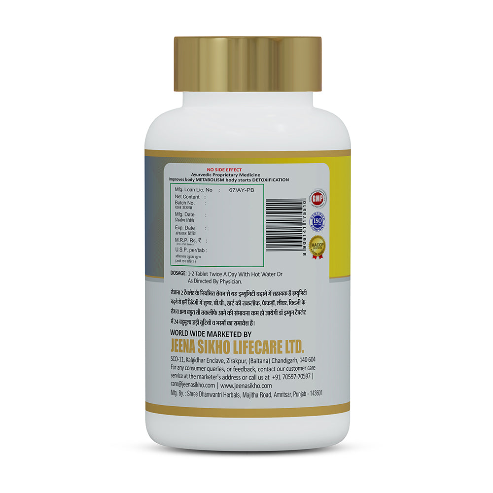 Quantity: Each pack of Jeena Sikho Dr. Immune contains 60 natural tablets.