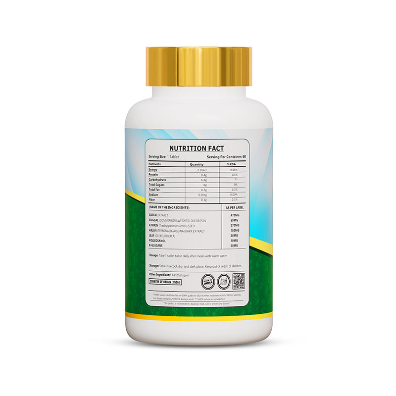 Jeena Sikho Organics Dr. Lipo Tablets bring together a mix of herbs that may help people manage lipid wellness for a long time. The blend includes garlic extract, guggal, ajwain, arjun bark, olive leaf and policosanol, all of which have been used in traditional practices for generations to maintain heart health. Many people choose these ingredients when they want something simple and natural for their routine. The tablets are made to fit easily into daily life and may be helpful for those who look for gentle support for heart wellness, cholesterol balance and steady circulation