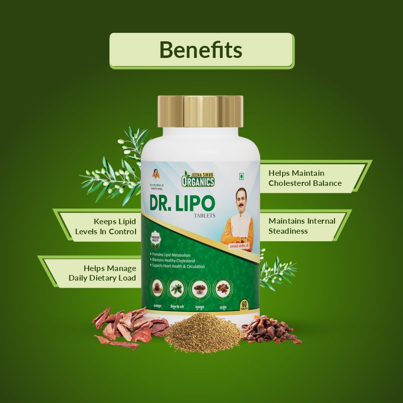 Jeena Sikho Organics Dr. Lipo Tablets bring together a mix of herbs that may help people manage lipid wellness for a long time. The blend includes garlic extract, guggal, ajwain, arjun bark, olive leaf and policosanol, all of which have been used in traditional practices for generations to maintain heart health. Many people choose these ingredients when they want something simple and natural for their routine. The tablets are made to fit easily into daily life and may be helpful for those who look for gentle support for heart wellness, cholesterol balance and steady circulation