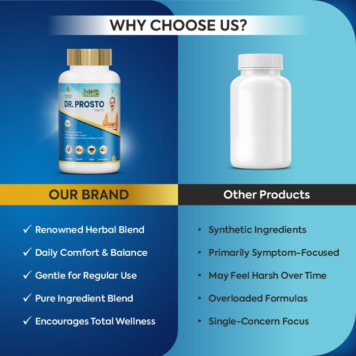 Jeena Sikho Organics Dr. Prosto Tablets are made with a blend of herbs that have been a part of traditional wellness for many years. The formula includes kanchnar, guggul, green tea extract and curcuminoids. These ingredients are well known in herbal practices and are often chosen by individuals looking for a natural daily routine. The tablets fit easily into day-to-day life and may be useful for those who wish to maintain comfort during urination, prostate ease and general defence wellness.