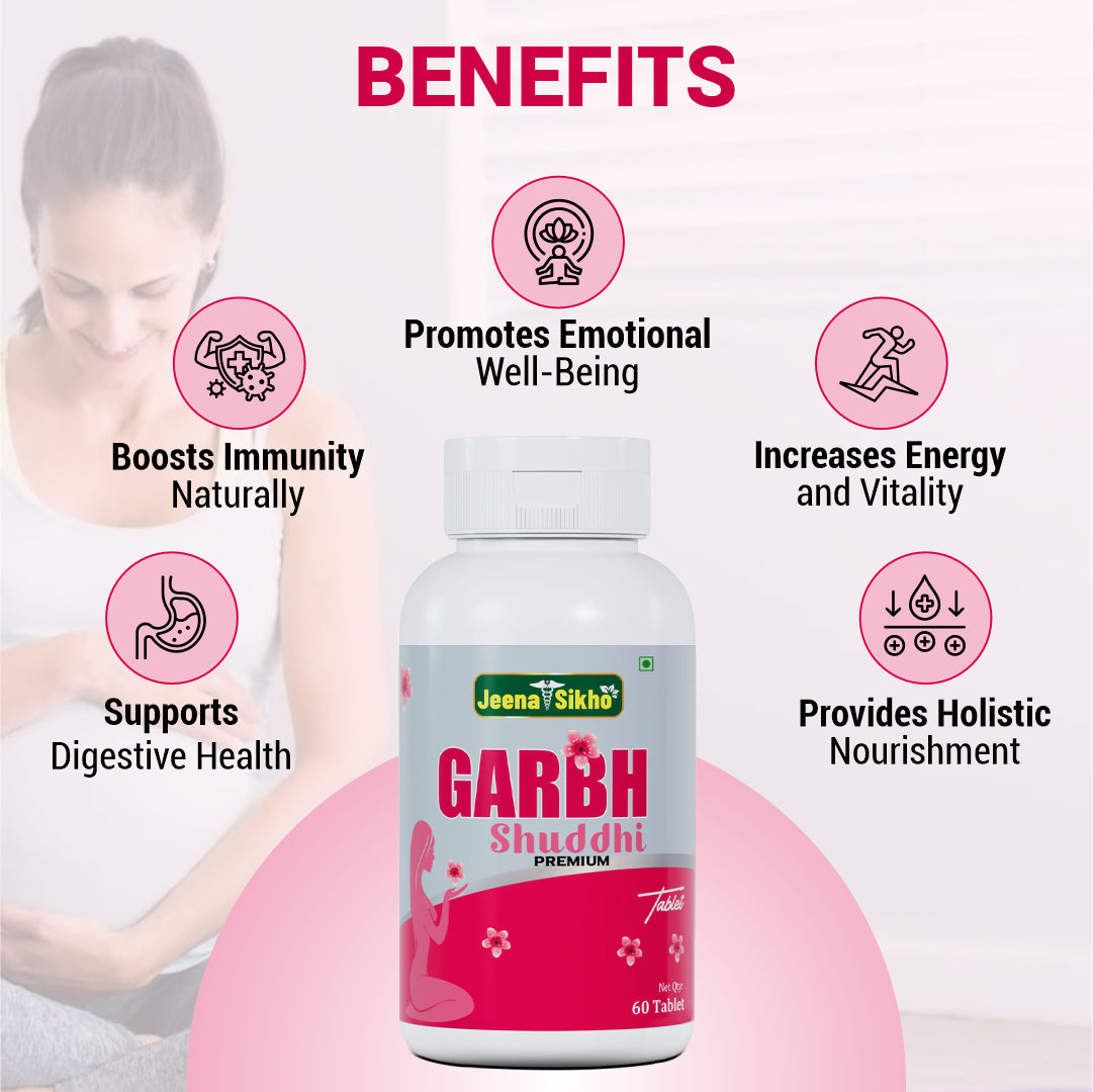 A natural prenatal supplement called Jeena Sikho Garbh Shuddhi Premium Tablets was created to provide natural food and care for pregnant women. The tablets, which comprise ashwagandha, harad, and amla as primary ingredients, seek to enhance vitality and protect immunity while supporting digestive functioning. After using Garbh Shuddhi, pregnant women can expect higher energy levels, enhanced immunity, and improved digestive system operation. This is the ideal natural supplement for pregnant women to preserve their health. It is safe for everyday use, devoid of harsh chemicals, and enhanced with vital minerals.