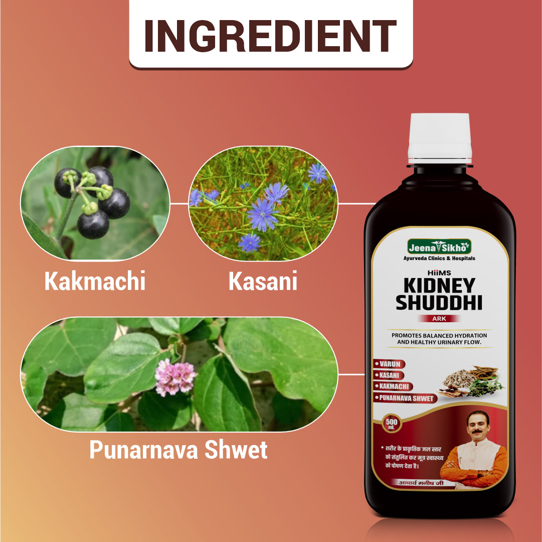 Jeena Sikho HIIMS Kidney Shuddhi is enriched with ayurvedic ingredients; this sugar-free tonic may help with flushing out toxins and maintaining healthy urinary function. Suitable for both men and women, this herbal tonic is free from harmful chemicals, making it safe for regular use. Embrace the goodness of nature with Kidney Shuddhi Ark and support your journey toward better kidney health and detoxification.