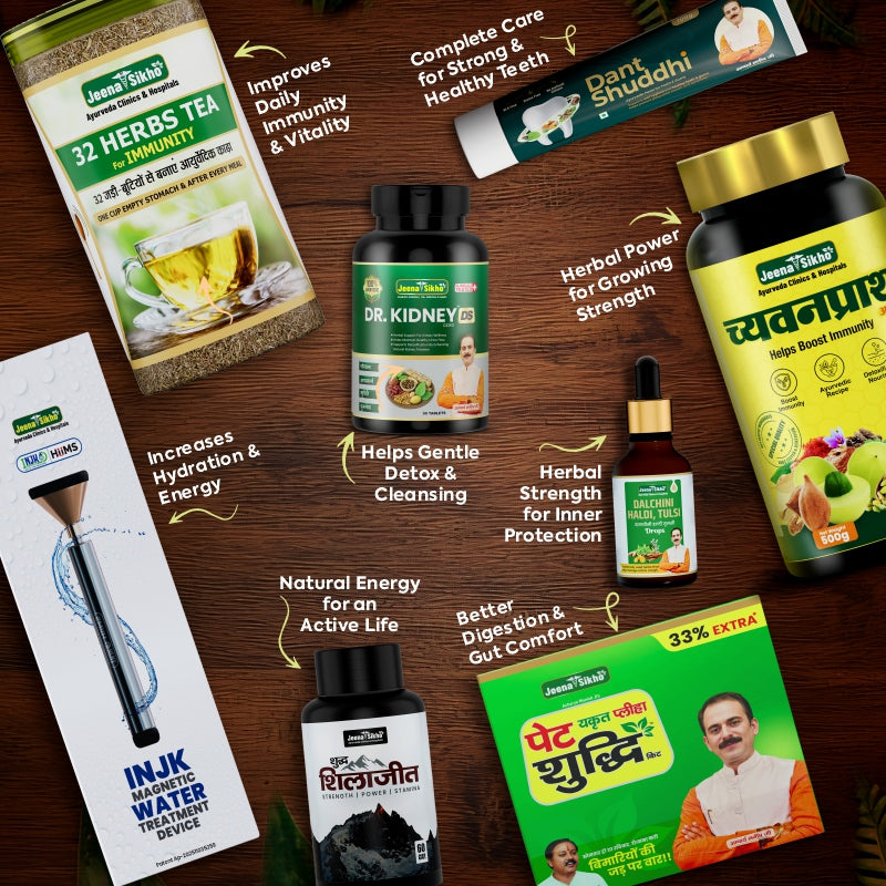 low immunity, sluggish digestion, weak liver–kidney function, constant fatigue, toxin buildup, poor energy levels, or any other similar symptoms? Try Jeena Sikho INJK Total Wellness Combo, and you’ll forget you ever had any of these.