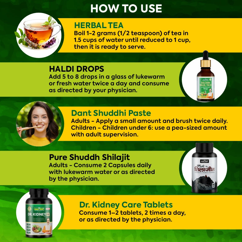 • Dr Kidney Care – Take 1–2 tablets, twice daily.
