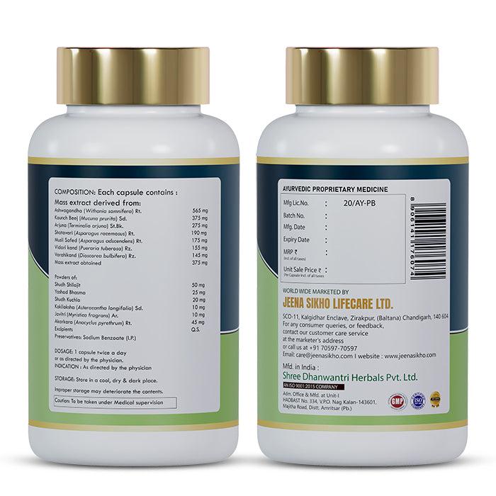 Jeena Sikho Ojas Forever+ Energy Capsule is an Ayurvedic formulation made with natural herbs such as Ashwagandha, Shudh Shilajit, Musli Safed, and Arjuna. It is specially prepared to improve energy, stamina, and strength. This capsule helps the body fight fatigue, stress, and weakness. It is suitable for daily use to support overall health, boost immunity, and keep the body strong. People with busy routines or low energy may notice more strength and alertness after regular use.