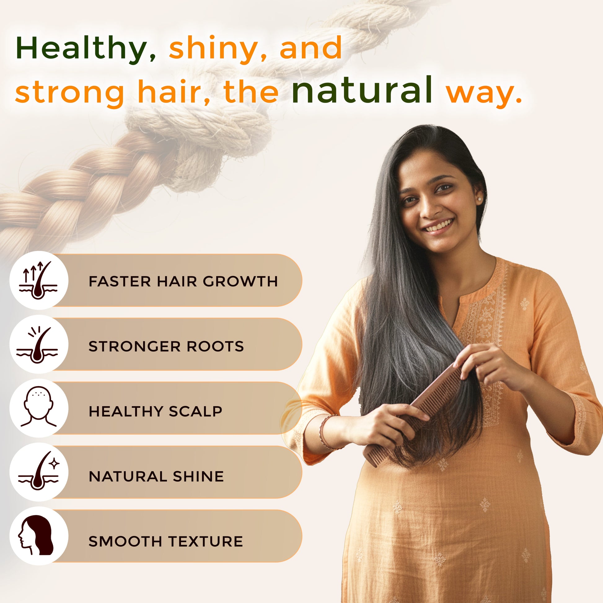 • Amla: A natural source of Vitamin C that helps strengthen hair roots, improve scalp circulation, and add shine to dull hair.