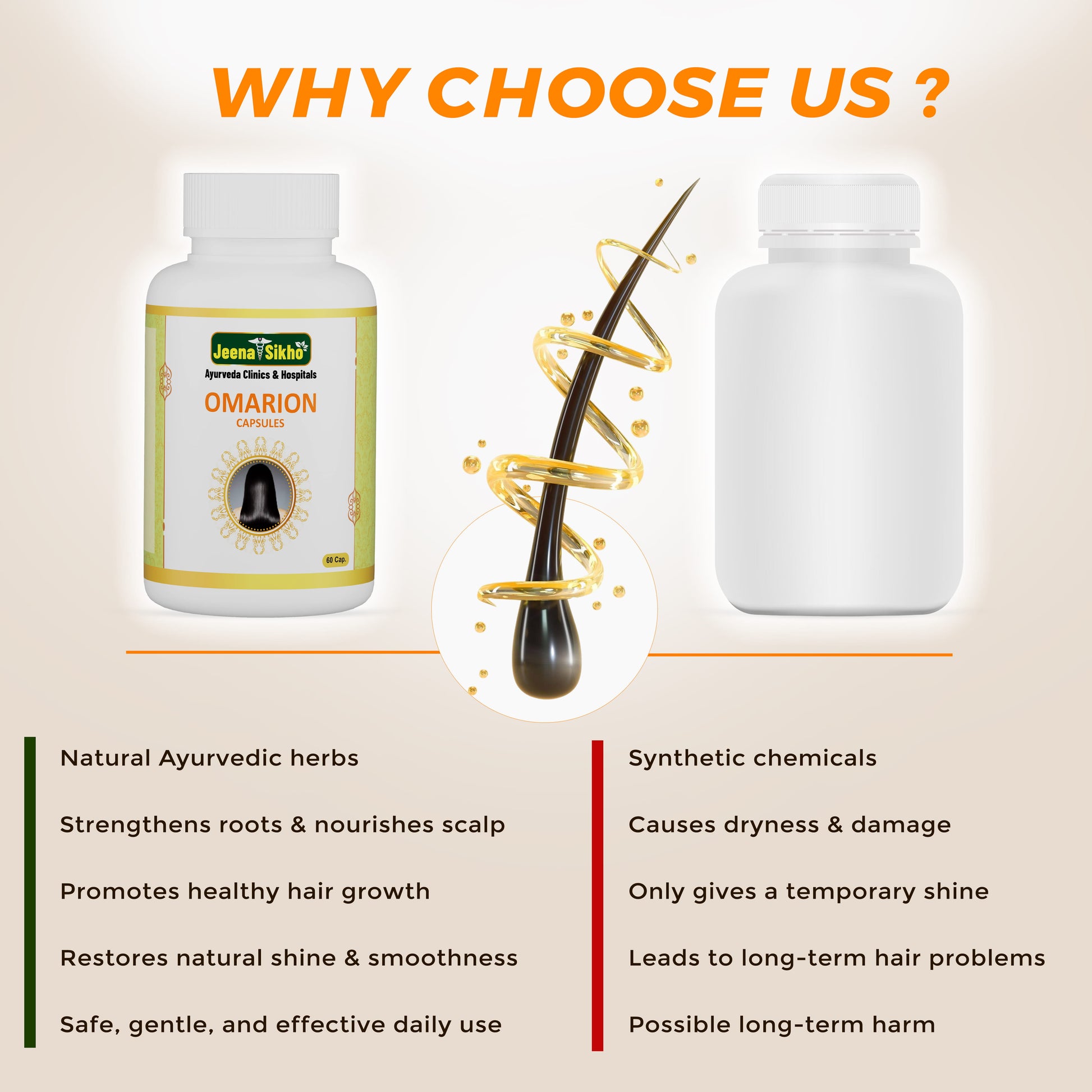 Omarion capsules are crafted with Ayurvedic herbs like Amla, Bhringraj, and Brahmi to nourish the scalp, strengthen roots, and manage hair fall and dandruff.