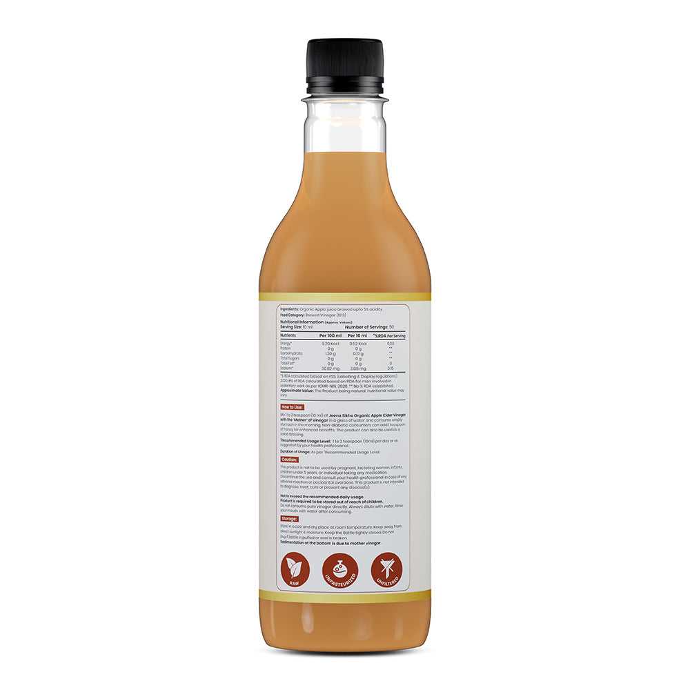 Jeena Sikho Organic Apple Cider Vinegar is Unfiltered and naturally brewed, a healthy juice that is made from certified organic apples. A natural source of natural enzymes and probiotics, it improves digestion, strengthens immunity, and controls weight. You get glowing skin, strong guts, and a complete detoxification. Use it as a detox drink, salad dressing, or skin and hair care. Jeena Sikho Organic Apple Cider Vinegar is an ultimate companion for good health.