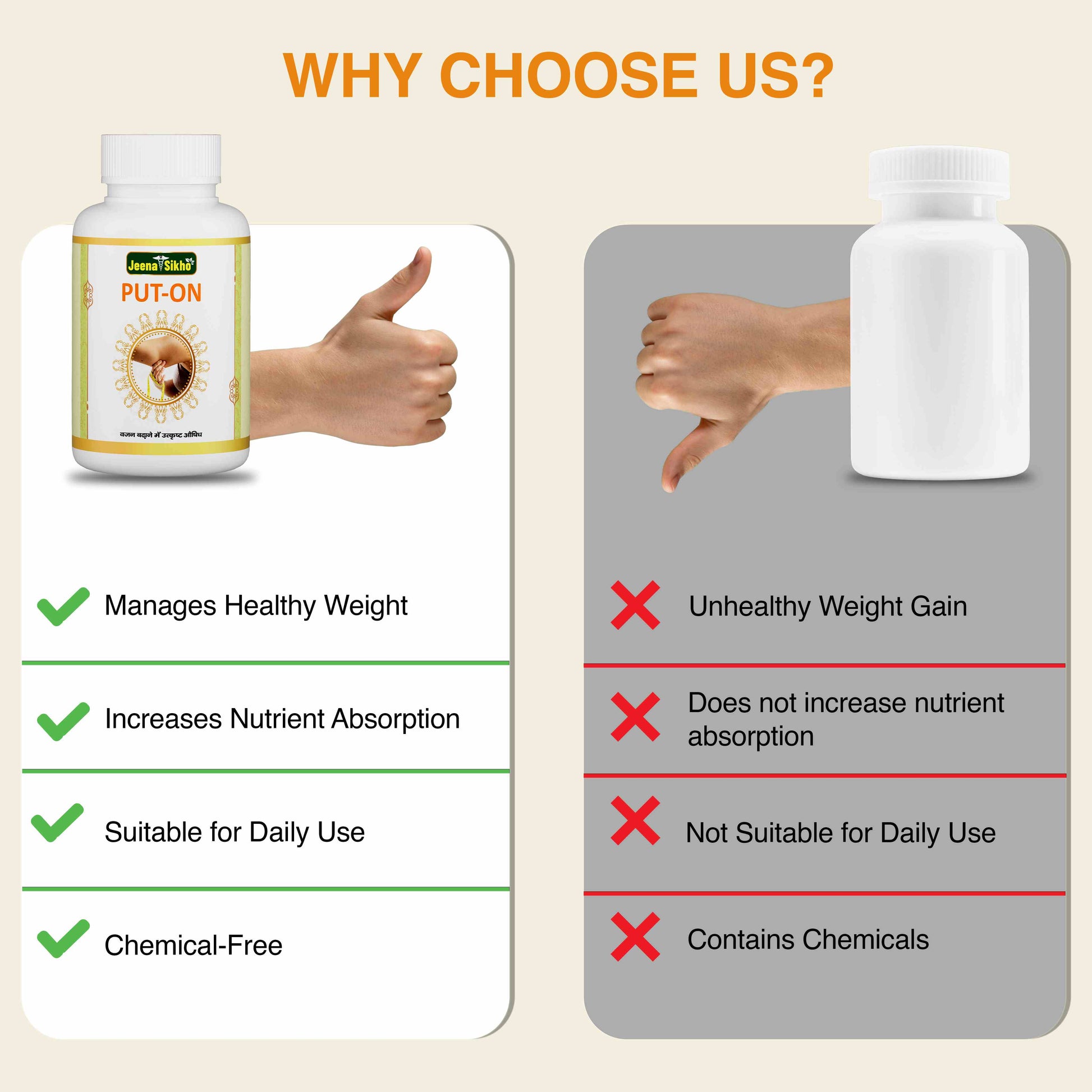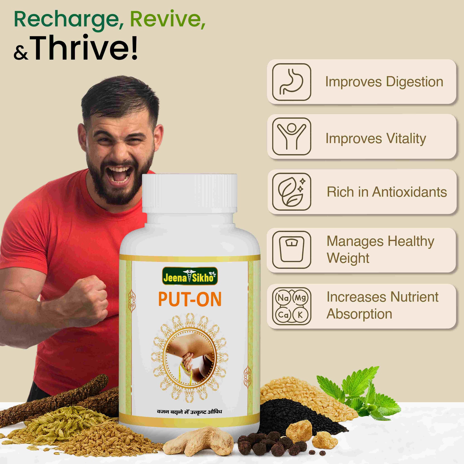 Jeena Sikho PUT-ON Capsules – Ayurvedic weight gain supplement that may support a healthier, balanced body. Designed to improve appetite, assist with nutrient absorption, and maintain natural weight management, these herbal capsules help you feel stronger and more energized every day.