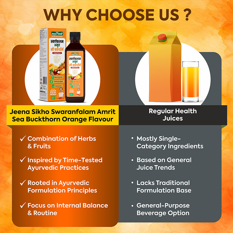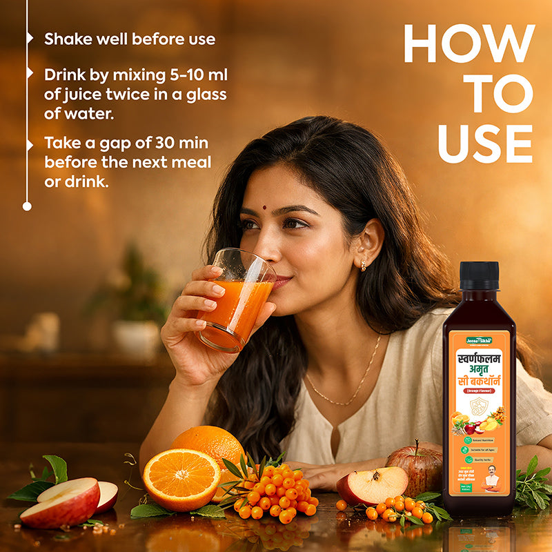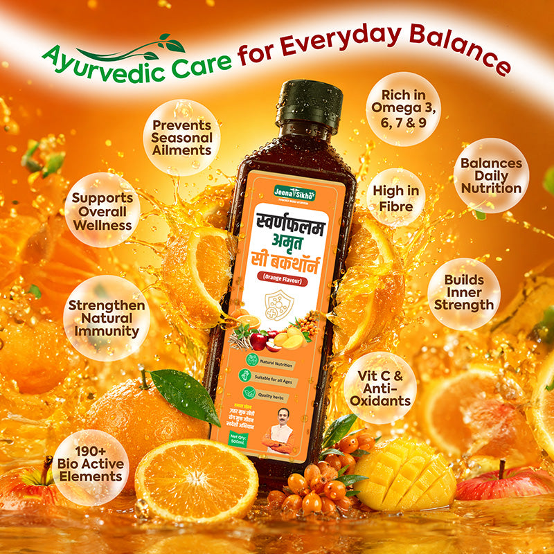 Jeena Sikho Swaranfalam Amrit Sea Buckthorn Orange Flavour brings together amlavetasa, orange, mango, apple, and ashwagandha in a simple Ayurvedic formulation. It is suitable for those who experience frequent seasonal issues or feel their immunity needs daily attention. The formulation is easy to use and blends smoothly into daily routines. Its mild orange taste makes it easy to consume without feeling heavy or unpleasant. It works well as a regular addition to your day, helping you stay consistent with your intake while maintaining overall balance.
